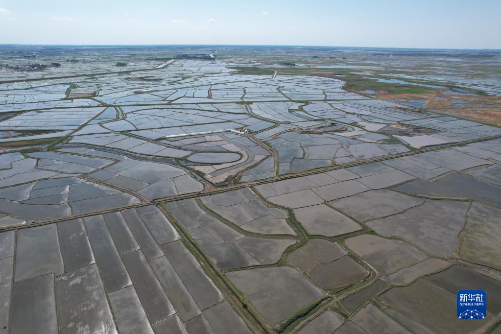 吉林省鎮(zhèn)賚縣稻田航拍畫(huà)面(2022年5月攝)。受訪者供圖