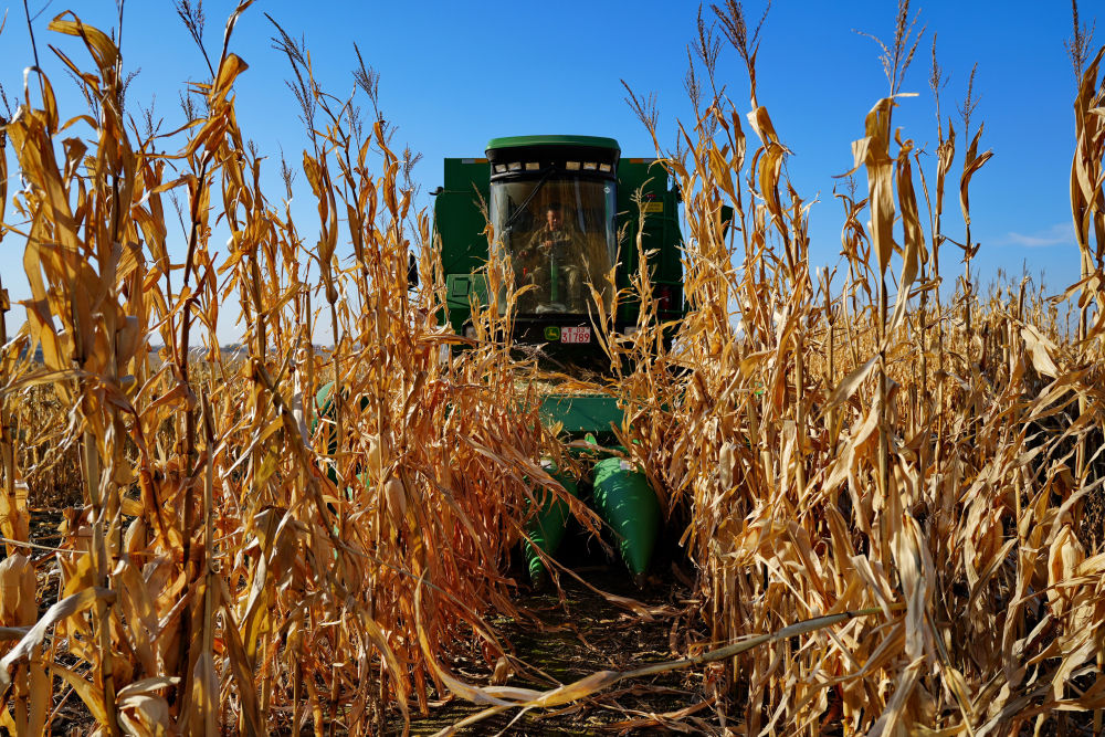 上圖:在吉林省四平市梨樹(shù)縣國(guó)家百萬(wàn)畝綠色食品原料(玉米)標(biāo)準(zhǔn)化生產(chǎn)基地核心示范區(qū),農(nóng)民駕駛農(nóng)機(jī)進(jìn)行秋收作業(yè)。張楠攝