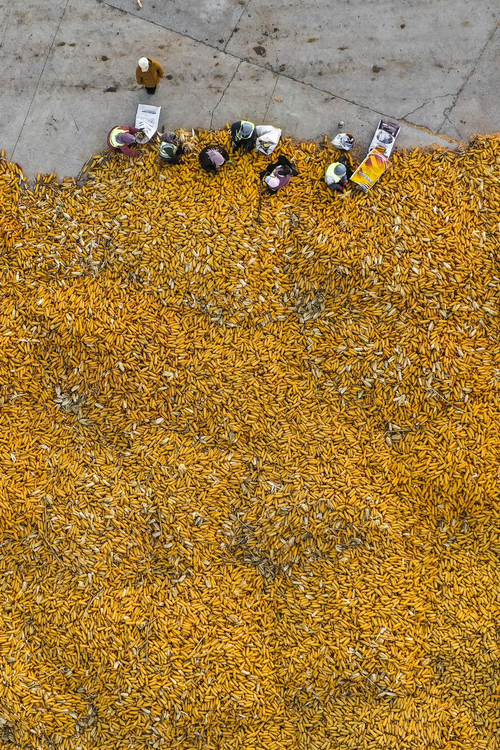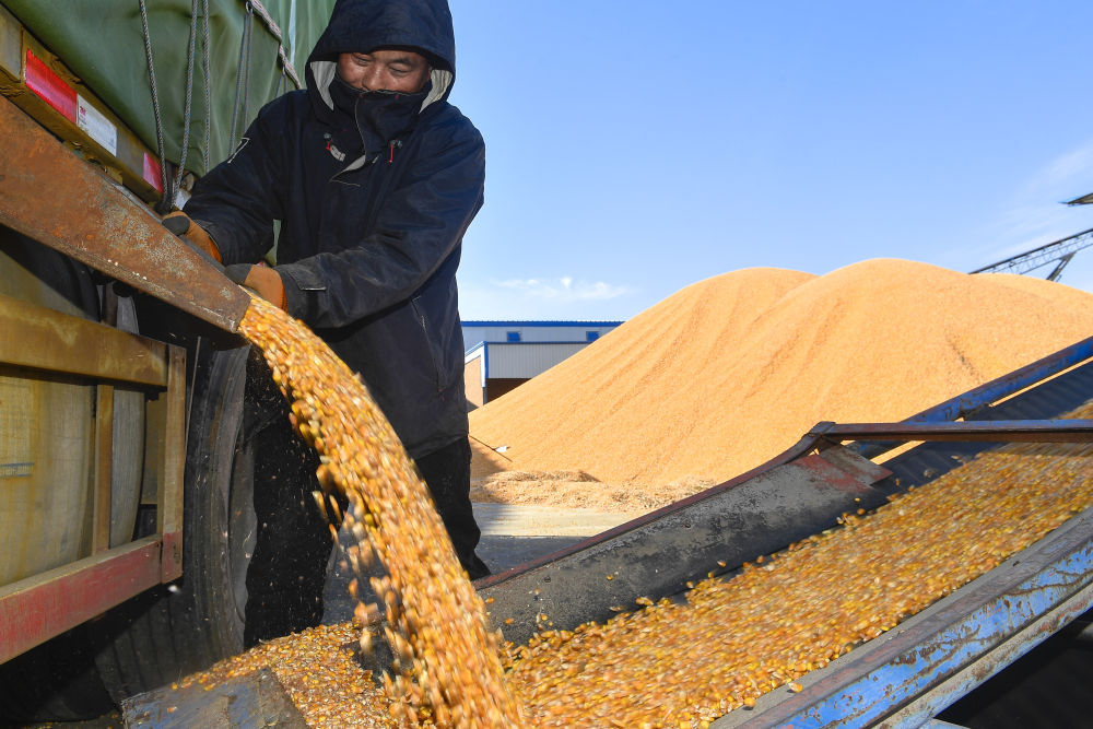 上圖:在吉林省公主嶺市環(huán)嶺街道土城子村志和農(nóng)機(jī)服務(wù)專業(yè)合作社內(nèi),農(nóng)民分揀收獲的玉米,為下一步的存儲(chǔ)做準(zhǔn)備。許暢攝