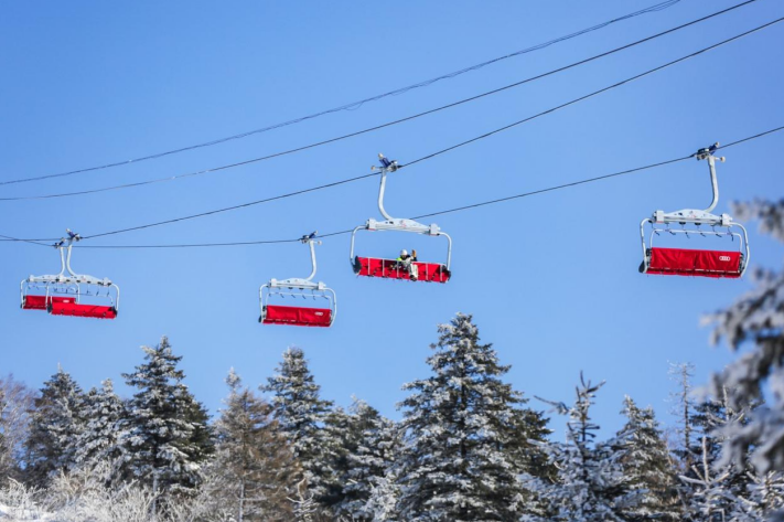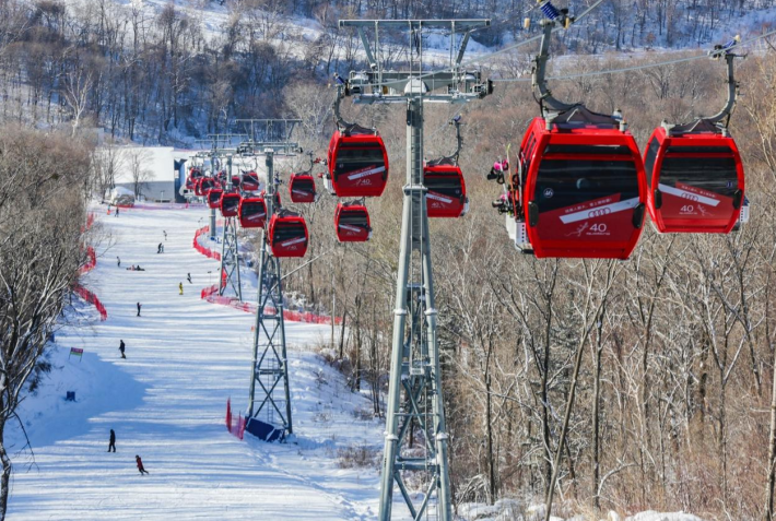 吉林市北大湖滑雪場(chǎng)運(yùn)行的纜車。