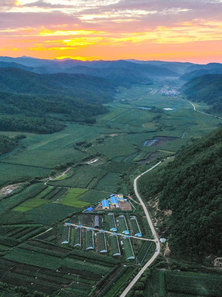 這是吉林省延邊朝鮮族自治州安圖縣福林村旁的野山菜種植大棚(2020年8月25日攝,無人機(jī)照片)。新華社記者 許暢 攝