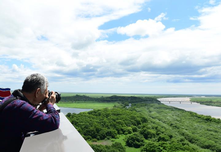 2019年6月21日,游客在琿春市防川景區(qū)拍照。新華社記者 林宏 攝