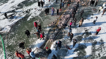 12月28日,位于中國(guó)東北的查干湖迎來(lái)新的冬捕季。查干湖冬捕是國(guó)家級(jí)非物質(zhì)文化遺產(chǎn),馬拉絞盤(pán)、冰湖騰魚(yú),原始的冬捕方式吸引各地游客前來(lái)觀賞。