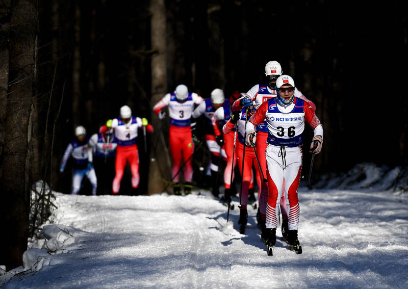 2020年12月29日,參加第19屆中國長春凈月潭瓦薩國際越野滑雪賽的選手在比賽中。新華社記者 許暢 攝