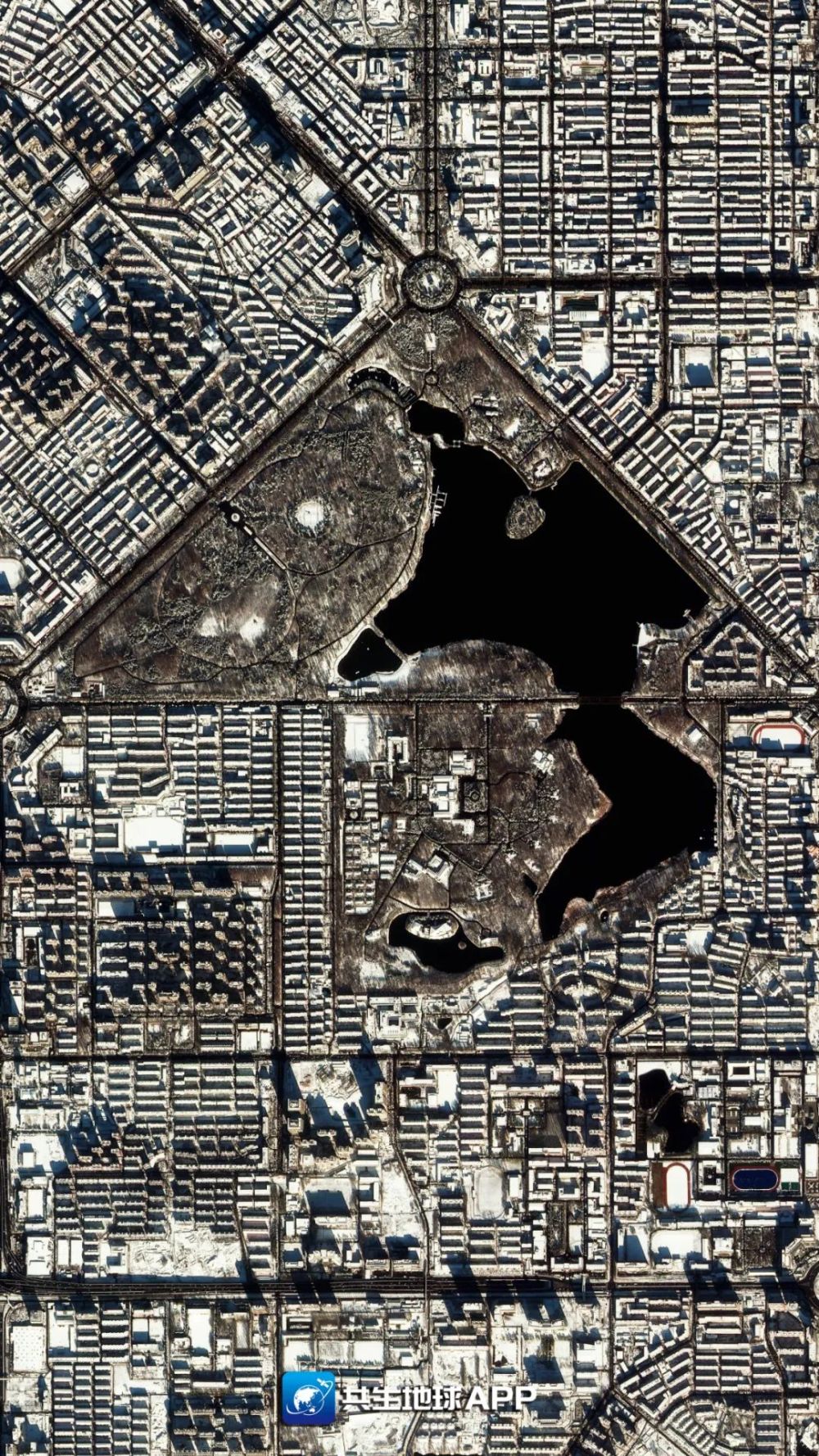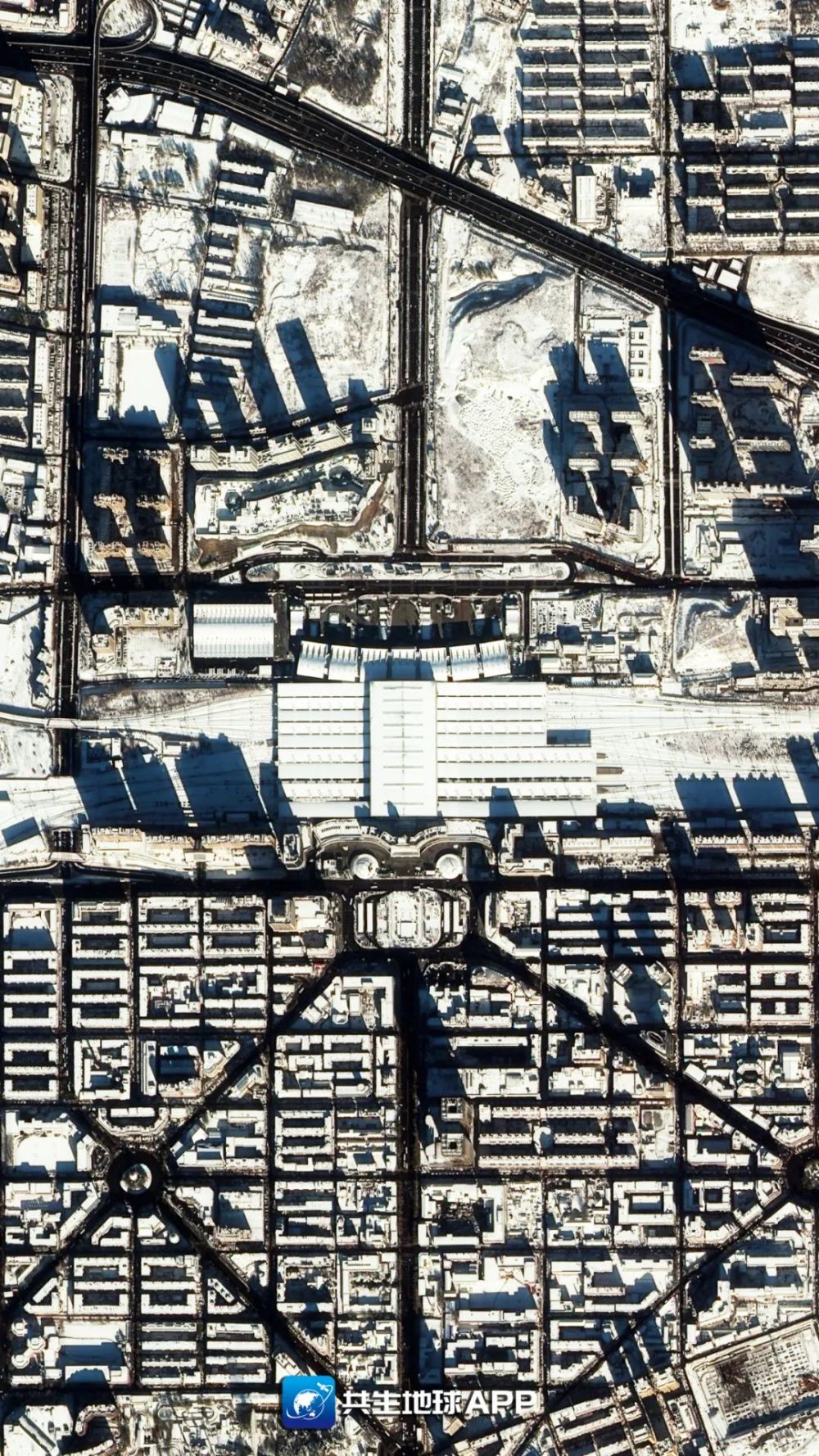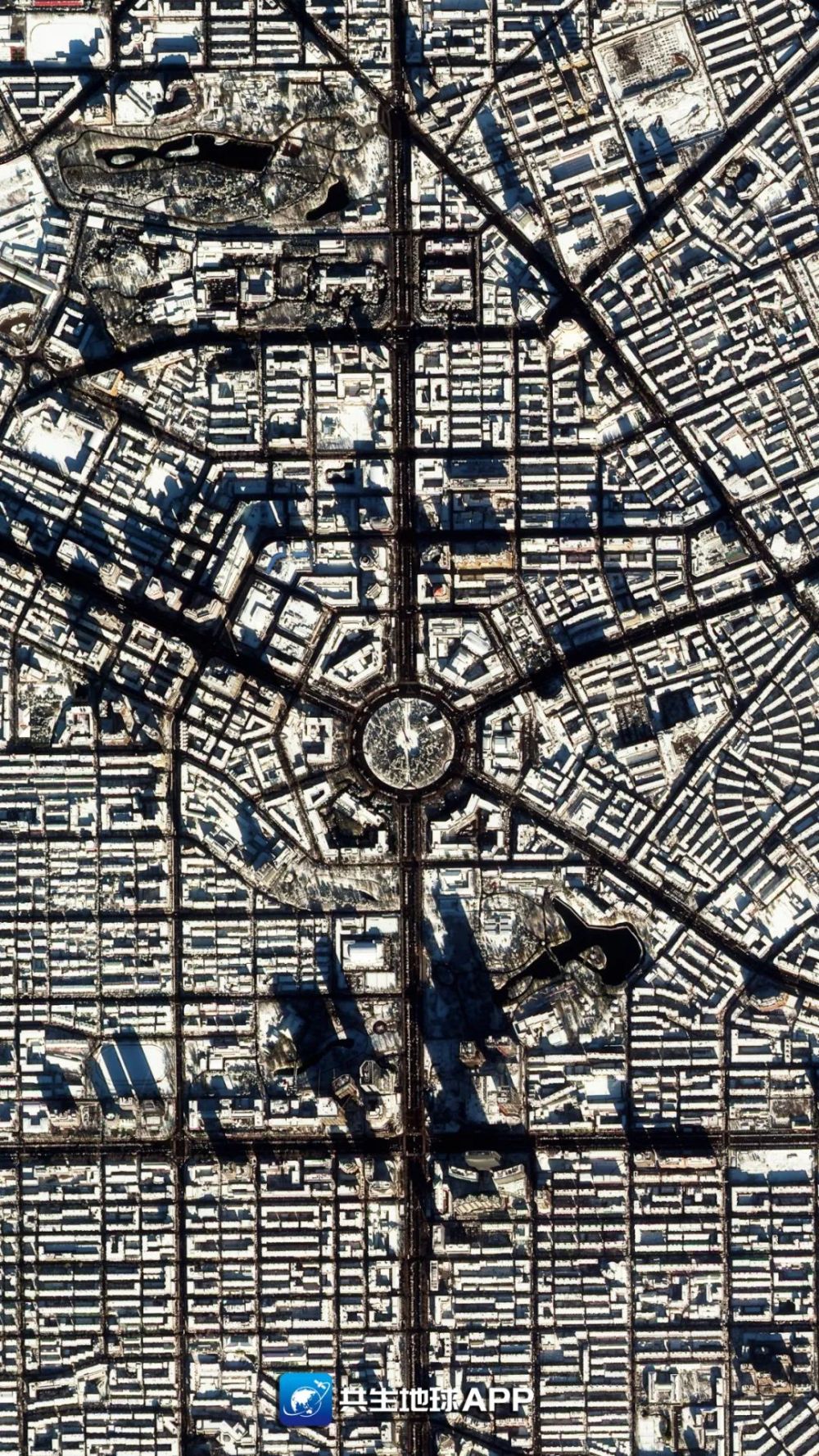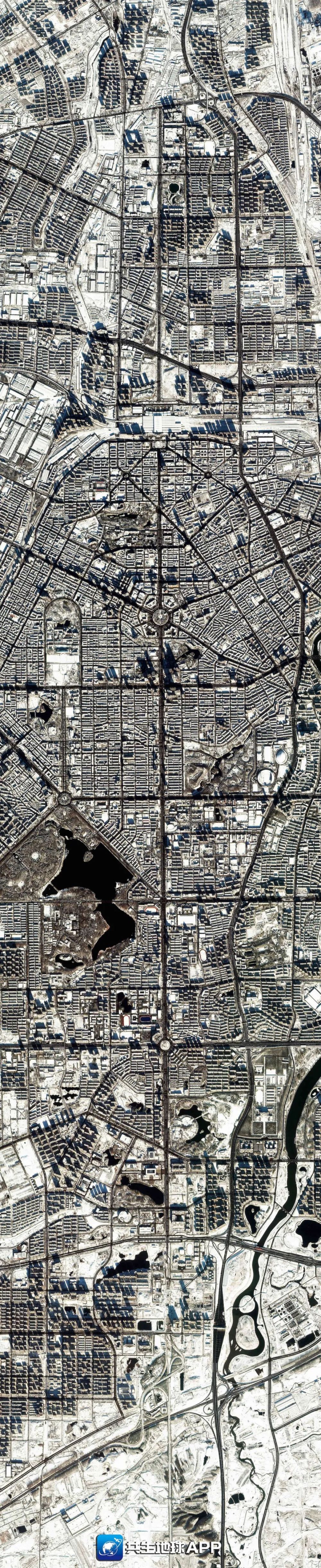 ↑這是“吉林一號(hào)”衛(wèi)星在太空中拍攝的長(zhǎng)春中軸線