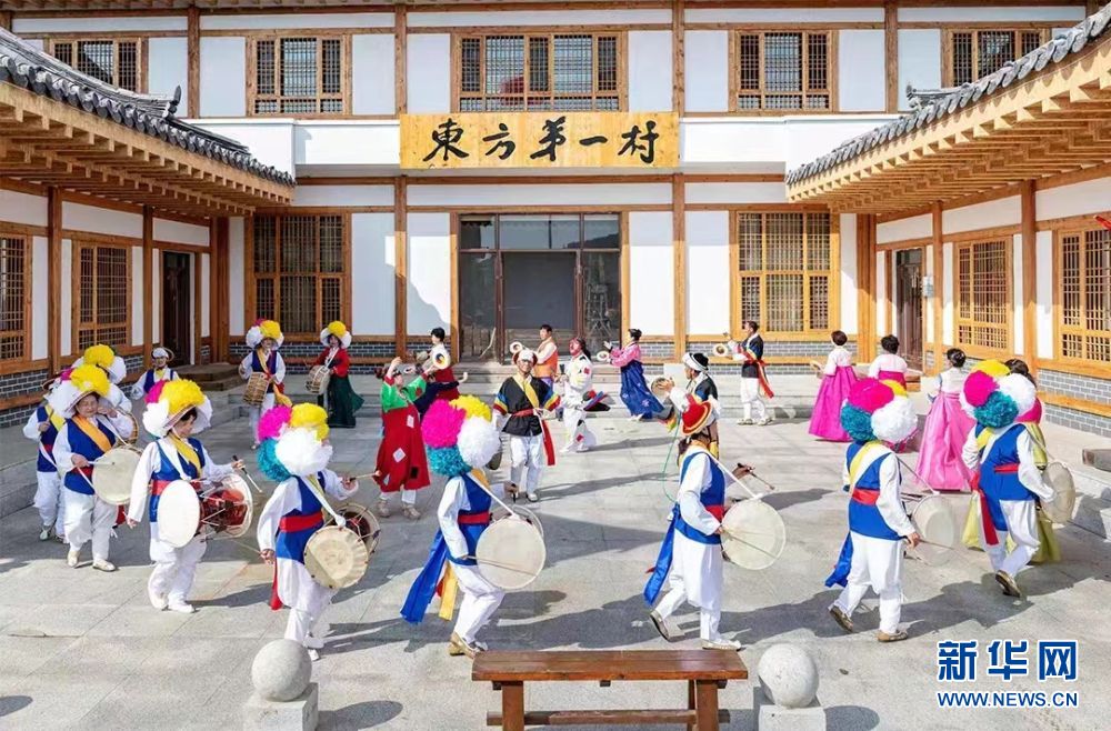 被譽(yù)為“東方第一村”的琿春市防川村正在進(jìn)行民俗演出。