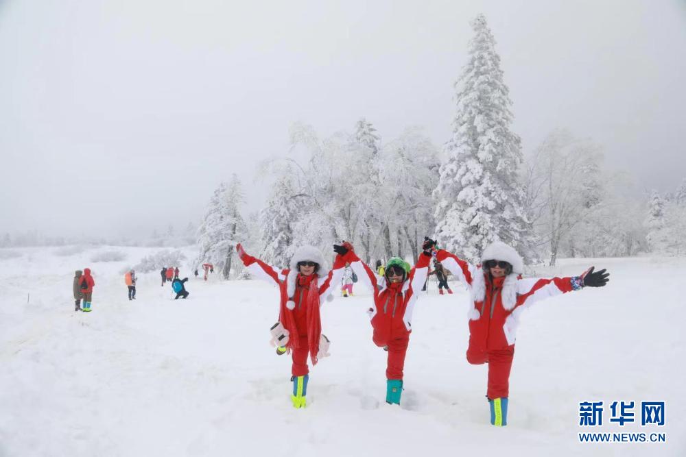 游客正在仙峰國家森林公園雪嶺景區(qū)欣賞雪景。