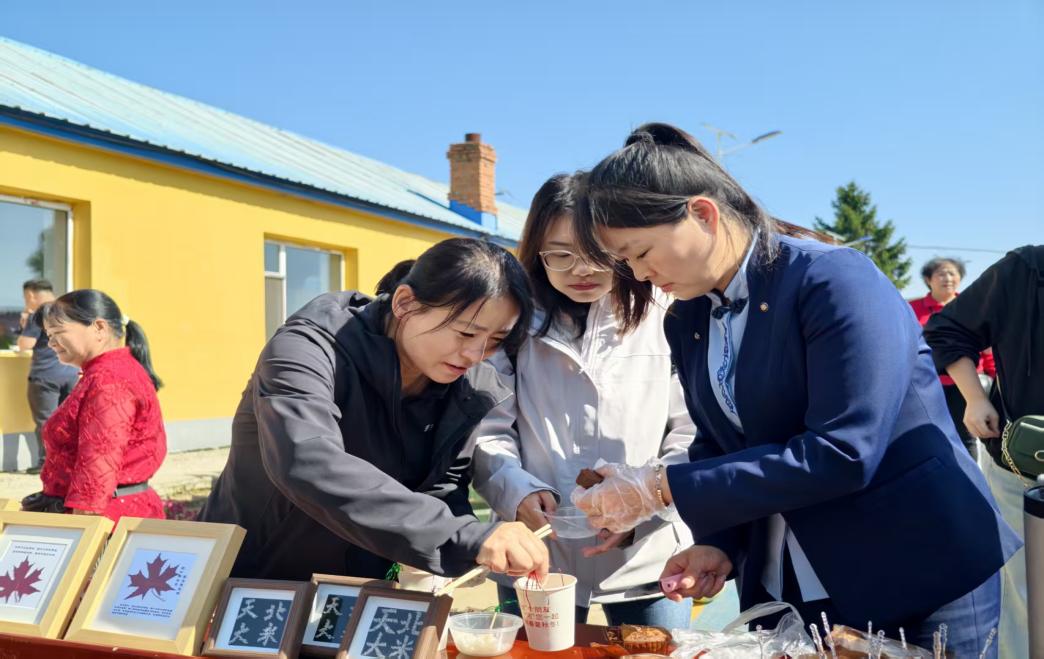 活动现场,中国农科院特产研究所专家对新品种水稻进行田间验收,重点考察稻穗饱满度与米质,推动良种应用与农业提质。随后举行的水稻收割比赛中,村民组与机关组选手在限时内完成收割,亲身体验粮食来之不易。“品尝米饭猜品种”环节也吸引了众多参与者。活动现场蒸制了四种不同品种大米,嘉宾与村民通过品鉴竞猜,加深对“天北大米”品质特色的了解。